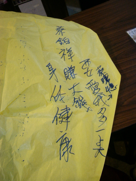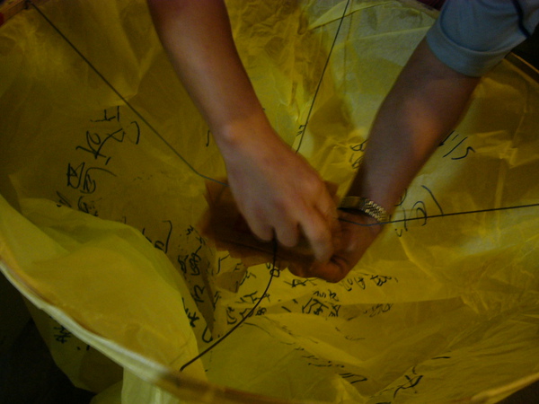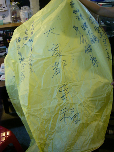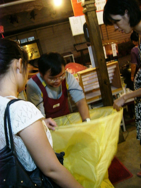 老闆幫忙塞紙錢,這樣才能點火喔!!